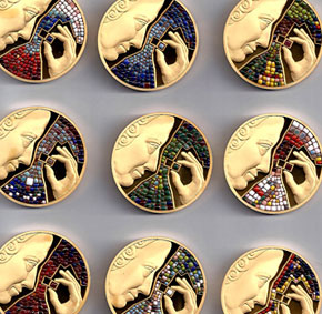 Эмалевая мозаика Манджоса, впервые медаль с мозаикой , цена за 1 шт., каждая индивидуальна и имеет своё название, качество "пруф", Международный патент
