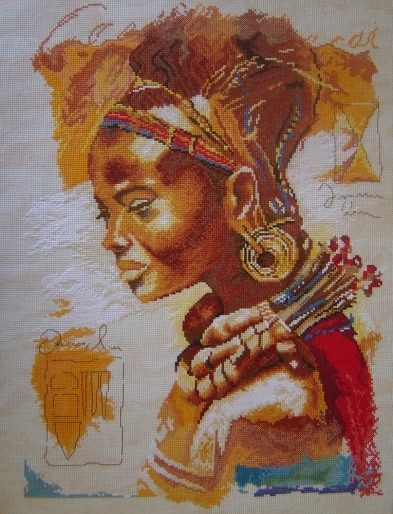 Работа выполнена на винтажной канве персикового цвета нитками DMC производства Франции. Выполнена по мотивам картины художника Joadoor "Цветок пустыни".