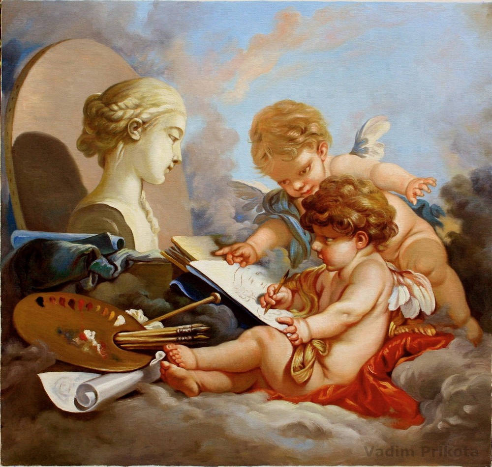 Копия картины Франсуа Буше "Амуры. Аллегория живописи" (1760-e).
