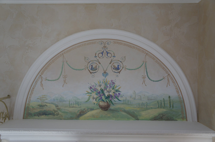 Роспись арок в бассейне.Пейзаж с букетом лилий и колокольчиков.