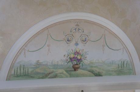 Роспись арок в бассейне.Пейзаж с букетом ирисов и ромашек.