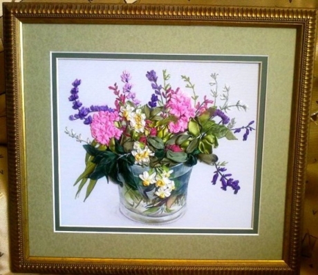 "Букет". Фуджико. Вышивка лентами.