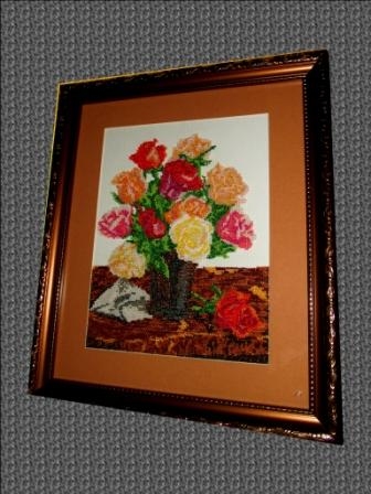 Работа выполнена бисером по канве, оформлена в профессиональный багет, со стеклом.