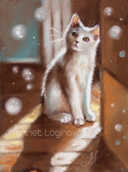 Работа выполнена пастелью на французской пастельной бумаге с бархатной фактурой.
