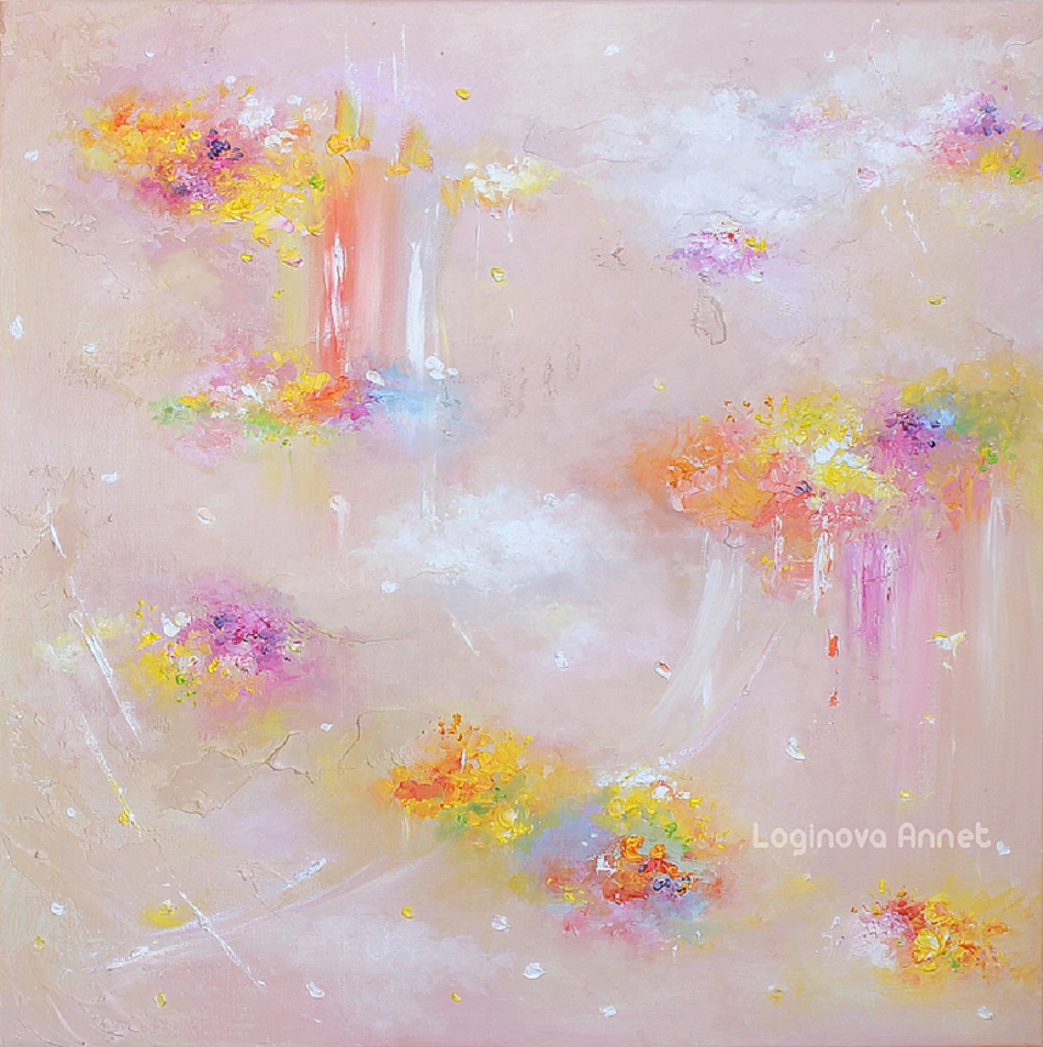 Работа выполнена маслом на льняном холсте, с объемной фактурой и многогранными, яркими переходами цветов.