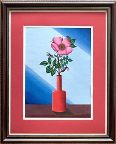 Цветок шиповника в красной вазе