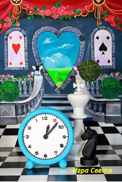 Декорации для фотостудии Viki Tiki на тему Алиса в Стране чудес. Эту тему можно использвоать в оформлении детской комнаты или студии, она понравится ребенку.