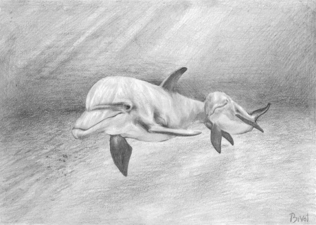 "Дельфины", простой карандаш, А4