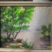 Работа вышита крестиком нитками мулине в два сложения по белой канве, оформлена с паспарту под тонким стеклом.