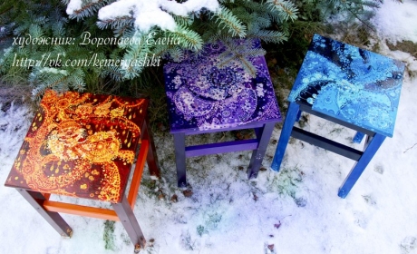 Дизайнерская мебель в Спб , роспись стен.Деревянный Табурет. Ручная роспись под лаком. Оригинальный рисунок-графика.