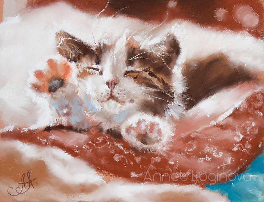 Работа выполнена пастелью на французской пастельной бумаге с бархатной фактурой.