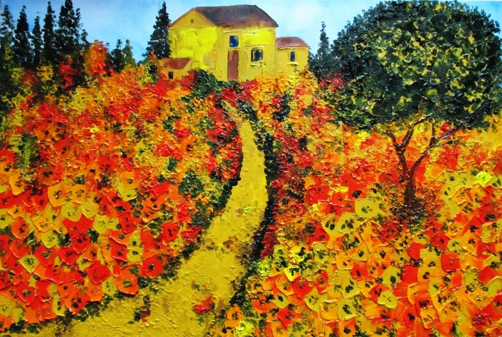 Оригинальная летняя картина "Дорога к дому" написана в технике импрессионизма. В работе применены высококачественный холст и профессиональные масляные краски.
