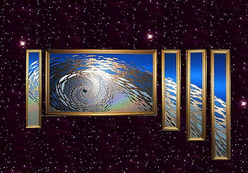 Работа состоит из пяти частей. Это не случайно. В пифагорейской системе чисел число пять символизирует свободу, импульсивность энергии. Это число свободной души, восторга и перемен. А сине-голубая гамма картины – это прообраз могучего духа, логоса, хранителя энергий будущего.