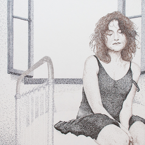 Работа выполнена на натуральном холсте, с использованием перманентных акриловых маркеров в точечной технике дотворк (dotwork).