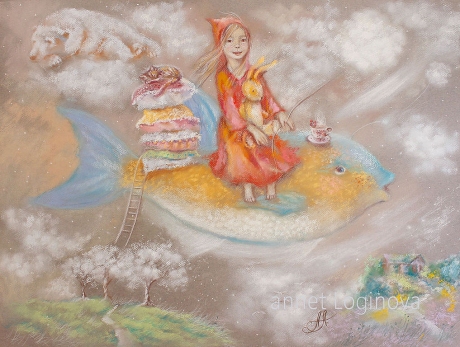 Работа выполнена пастелью на пастельной хлопковой бумаге.