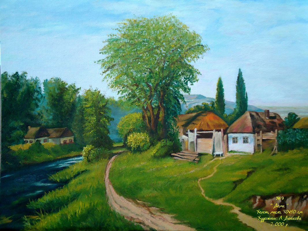 Ручная работа картина "Хуторок" выполнена на холсте маслеными красками, размер картины 30х40. Также Вы сможете заказать любую картину по вашему вкусу: копию картины любого известного автора, картину по фото, воплотить любую свою фантазию, предоставив эскиз или образ.