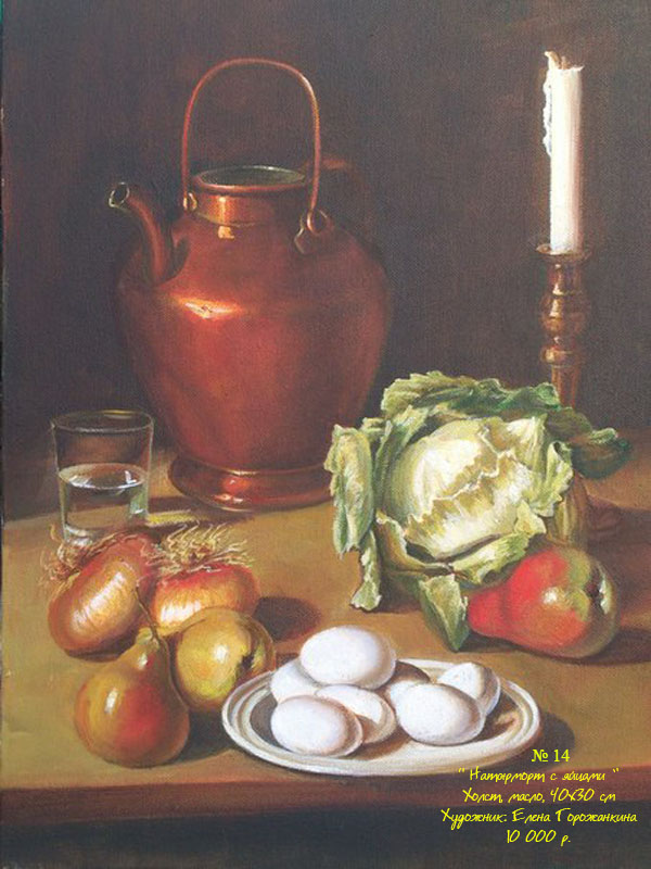 Ручная работа картина "Натюрморт с яйцами " выполнена на холсте маслеными красками, размер картины 40х30. Также Вы сможете заказать любую картину по вашему вкусу: копию картины любого известного автора, картину по фото, воплотить любую свою фантазию, предоставив эскиз или образ.