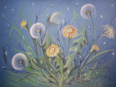 Картина пастелью "Одуванчики"
