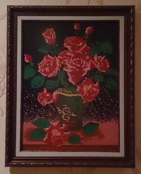 картина вышитая крестиком букет роз