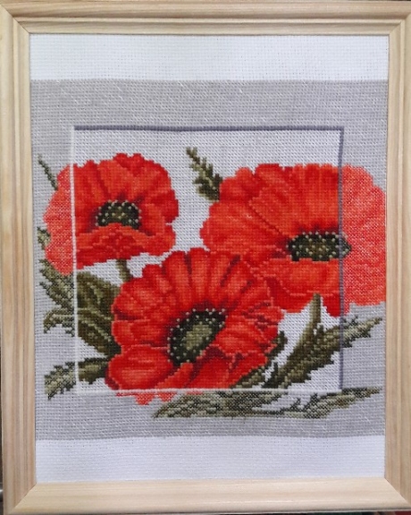 Картина,вышитая крестом"Красные маки"