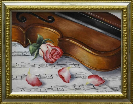 музыка#масло#картина маслом#натюрморт#классика#реализм#скрипка#ноты#роза#искусство#
