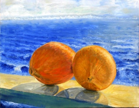 Пара спелых кокосов, нарисованная во время поездки в южные страны.