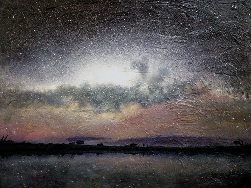Родилась ночью, как и сам образ. мне хотелось написать бесконечность , но при этом оставаясь стоять на земле, не отрываясь от своего места. я увидел,что мир являет собой не только видимое ,но и незримое пространство со своими законами. и мы видим доказательства этому - бесчисленное скопление звезд ,галактик . И главное - это отражение в воде,словно в глазах видящего. Кто- то из мудрых сказал - "красота в глазах смотрящего" - и это справедливо.