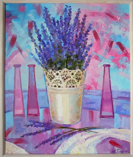 Работа в современном стиле. Оформлена в деревянную тонкую рамку.