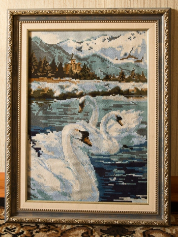 Работа выполнена в технике счетный крест. Работа оформлена в багет. Реальному покупателю хорошая скидка.