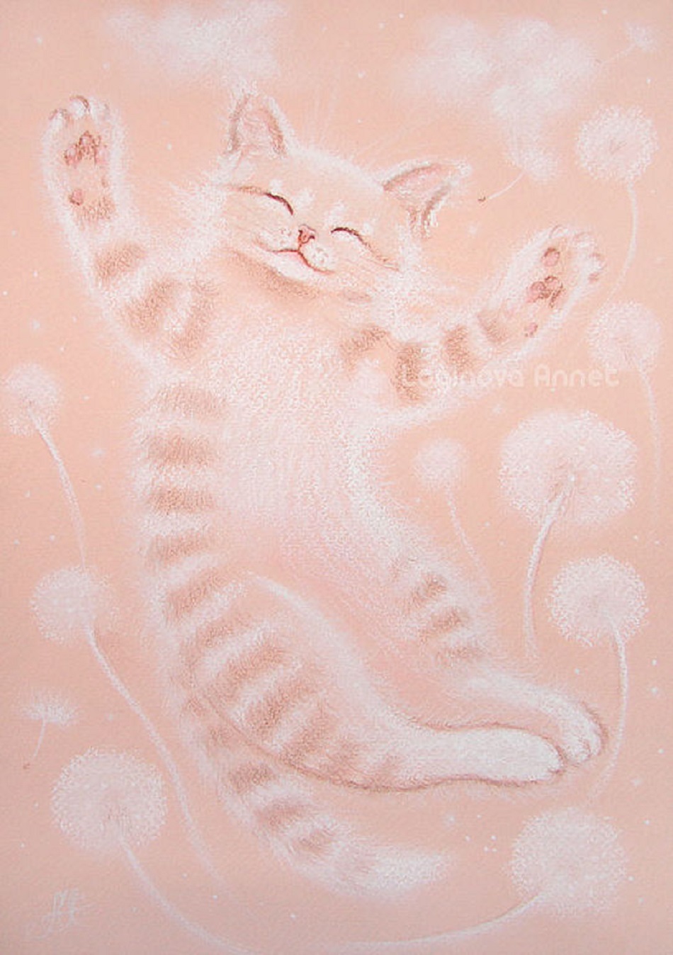 Выполнена пастелью на бумаге в очень нежной, светлой и воздушной технике.