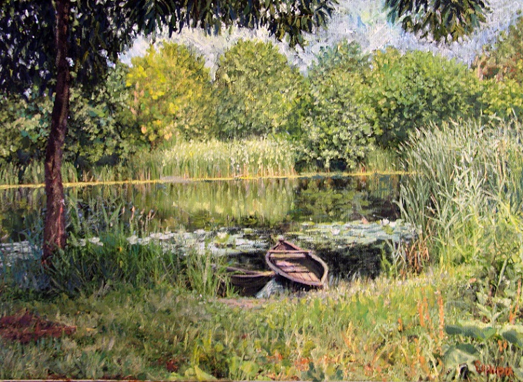 Летний пейзаж с лодками