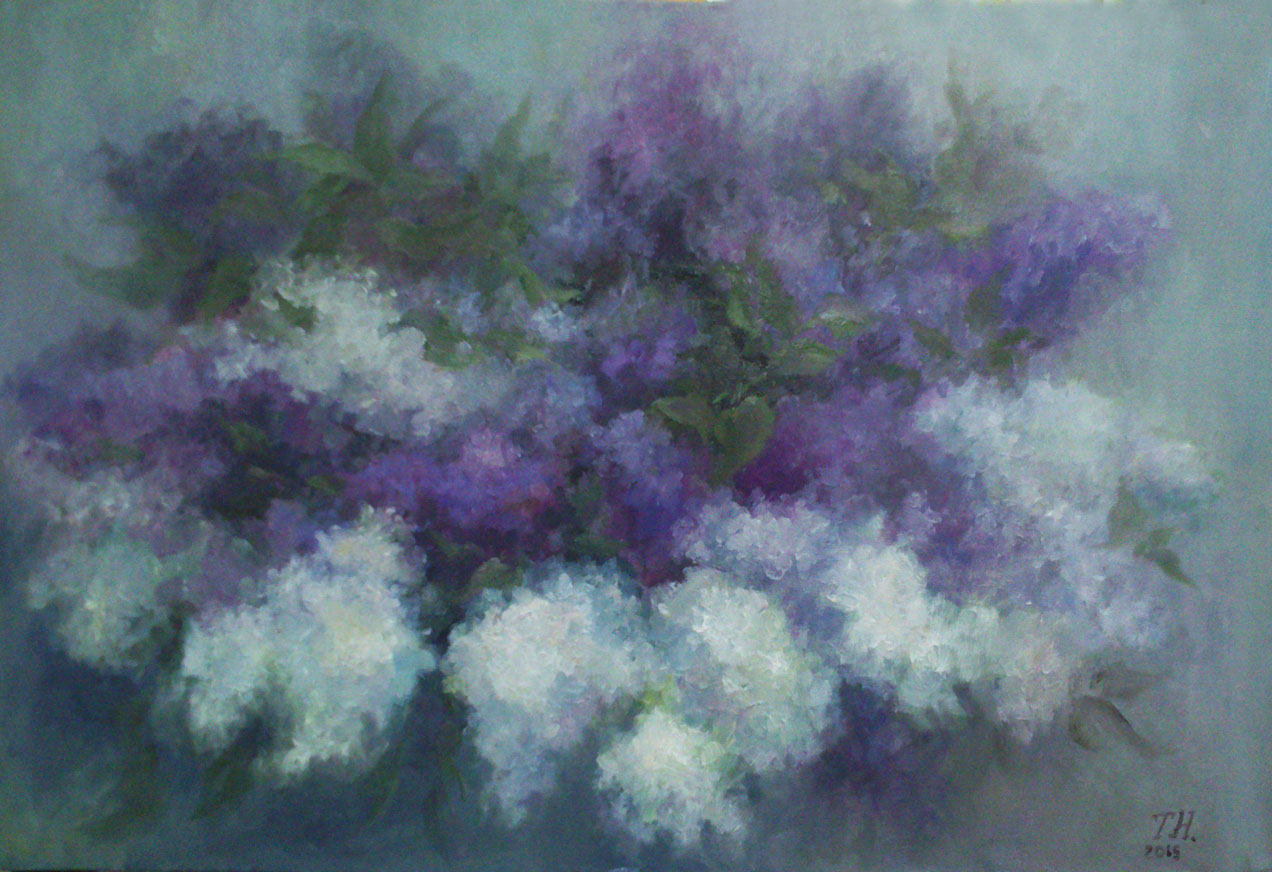 Люди, которые стоят под дождем, смотрят на сирень через окно