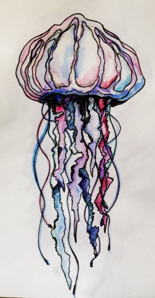 Медуза. Акварель, тушь.