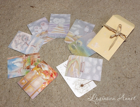 Открыточки по мотивам теплых сюжетов картин, выполненных пастелью...
