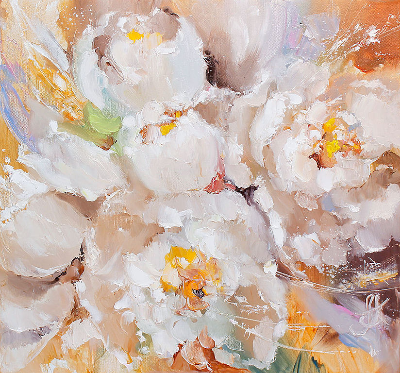 Работа экспрессивная, с сочными мазками краски и небольшим шелковистым блеском.