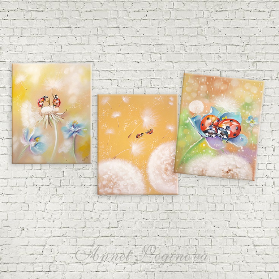 Набор авторских принтов на холсте из серии пастельных картин "Макромир".