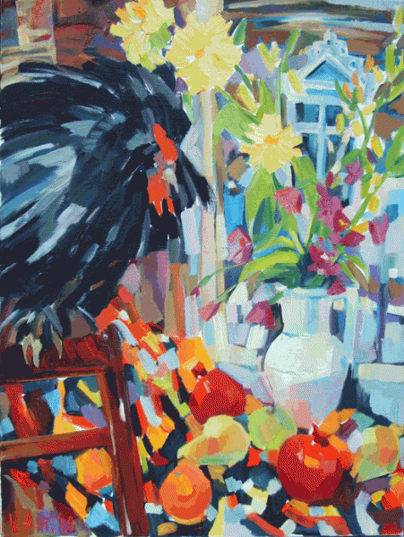 Натюрморт с черным петухом.