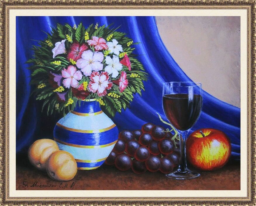 Натюрморт с цветами и виноградом