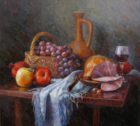 Картина полностью выполнена вручную: от натяжки холста на подрамник, проклейки осетровым клеем до последнего мазка.