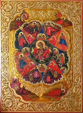 Икона выполнена на доске липы, с использованием резьбы по левкасу, золочения, письмо - масляными красками, освящена.