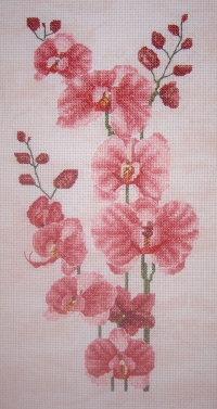 Работа выполнена на винтажной канве персикового цвета нитками DMC производства Франции.