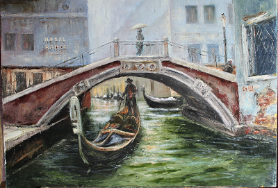 река мост венеция дома лодка люди