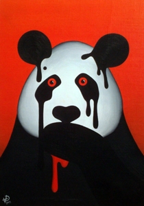 Зверек, находящийся на грани исчезновения, изображенный на красном фоне, символизирующем "страницу" красной книги животных. Красная "пища" в его лапе символизирует поглощение всего того, что приближает его к вымиранию как вида. (г. Москва)