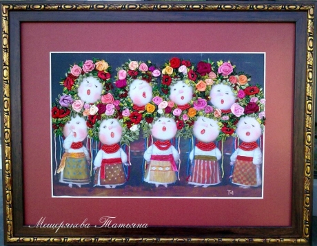 "Певуньи". Вышивка лентами по картине Е.Гапчинской "Хор имени Веревки"