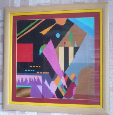 Двойной багет, паспарту, стекло, хлопковое мулине. Схема авторская. Картина вышита в единственном экземпляре полукрестиком. Размер без рамы 47*47 см.