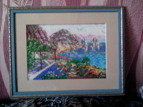 Картина вышитая бисером. Оформлена в багетной мастерской. Возмоден пересыл почтой России или ДЛ