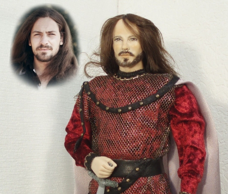 Статичная портреная кукла по фотографии.Позу рук можно менять. Материалы: ливингдолл,металлический каркас, подставка-дерево, роспись-акрил, трессы; текстиль \бархат, шелк, металлизированная сетка\,кожа, меч-пластик и акрил. Подарена руководителю рыцарского клуба исторической реконструкции.