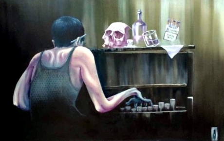 картина была написана для выставки по мотивам фильма " рок н рольщик" режиссера Гай ричи.