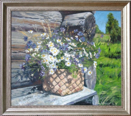ромашки.васильки.50х60см.холст.масло..