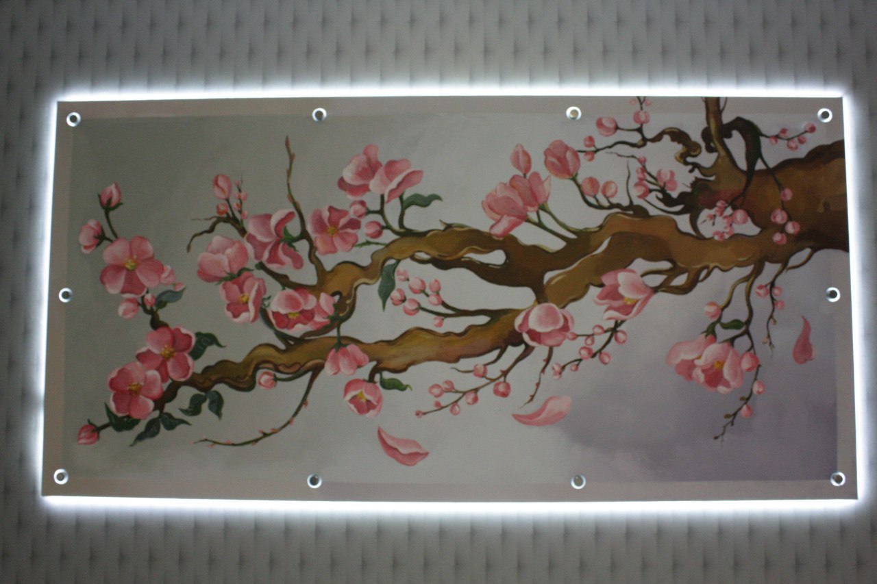 ,,САКУРА,, Стеновая панель из стекла с подсветкой.АКРИЛ.